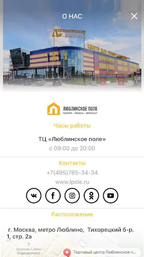 Lublin Field - one of the largest in Moscow specialized shopping centers, located in the SEAD capital, within walking distance from the "Lyublino" metro station and a 7-minute drive from Moscow.