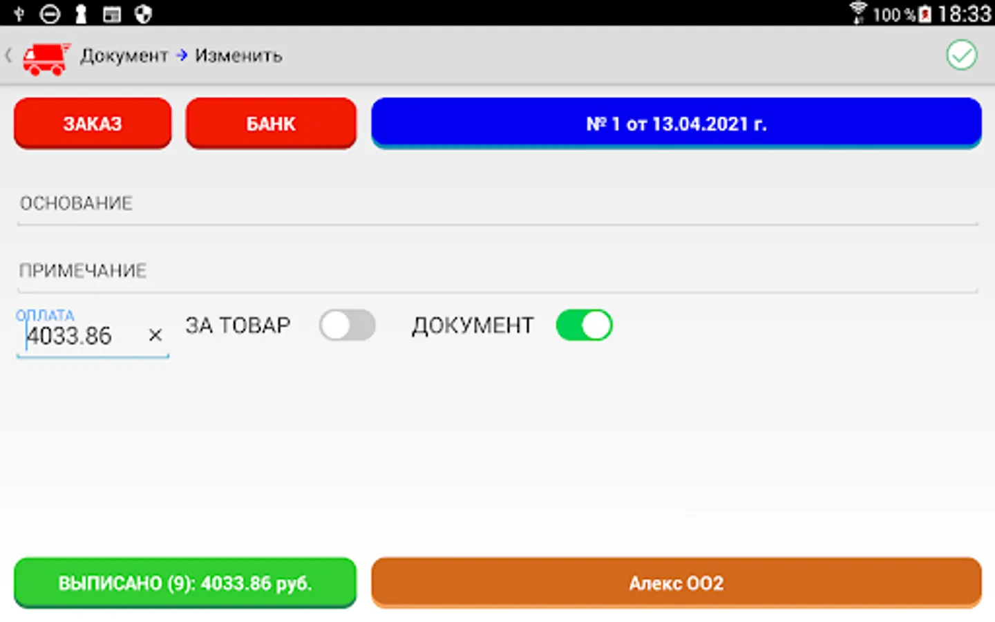 MD4x4 "Delivery" is designed to automate the work of a mobile sales agent for the sale and delivery of goods.