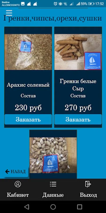 The assortment includes dried, smoked fish, croutons, cheese, meat chips, nuts, snacks - in general, a lot of delicious things! Delivery in Moscow and the Moscow region.