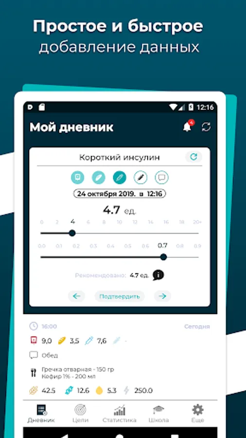 DiaMeter free app - a quick and useful diabetes diary for your smartphone. Thanks to him, you can forget about the complex process of recording data about diabetes and start to follow him simply and conveniently using the quick input in this application.