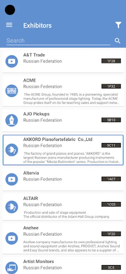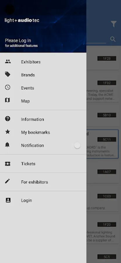 • Favorites tab — to save boothes or events and share it with colleagues.