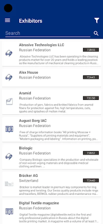 • Favorites tab — to save boothes or events and share it with colleagues.
