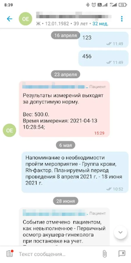 - remote dialogue between medical workers and patients in the mode of text and file transfer;