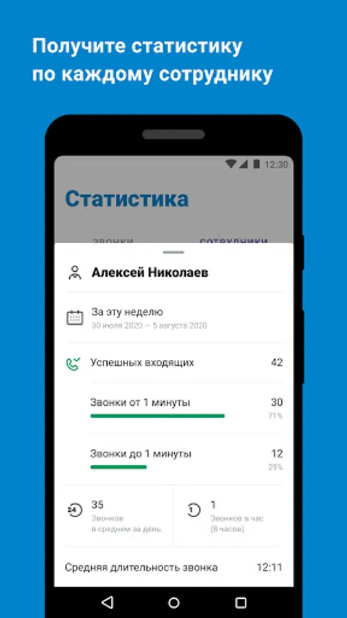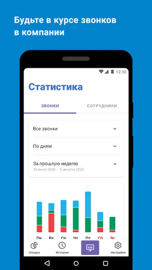 - study statistics on calls for an arbitrary period in order to assess the dynamics for the company as a whole or for a specific employee;