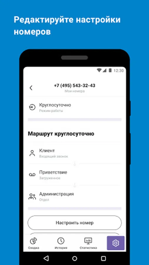 A virtual PBX from MGTS is now at hand 24/7, wherever you are. Control company calls, listen to call records, study call statistics, change the PBX settings - as soon as you have such a need. Help your team become more efficient with the mobile app!
