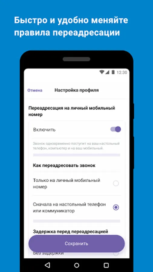 - change the VPBX settings in order to quickly correct the routes of receiving calls or set up call forwarding.