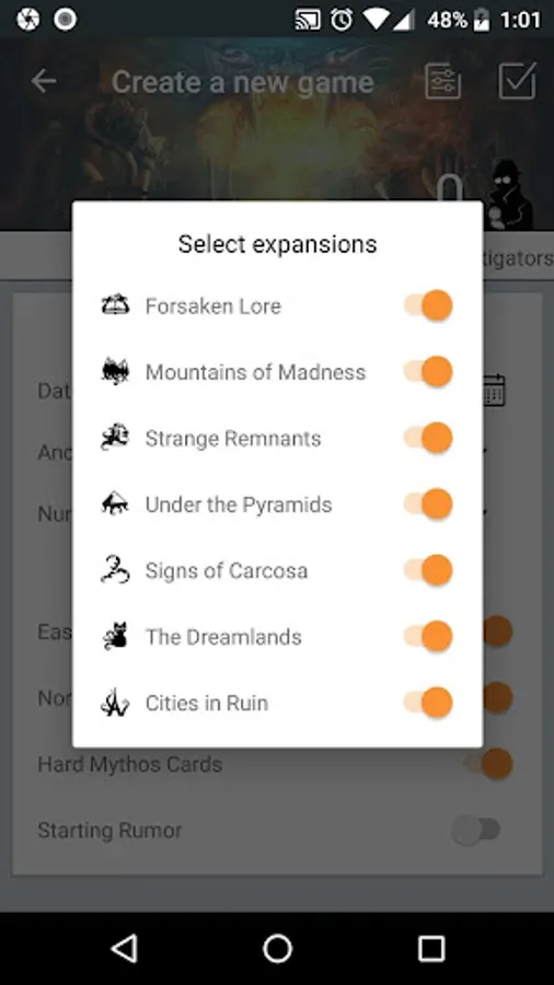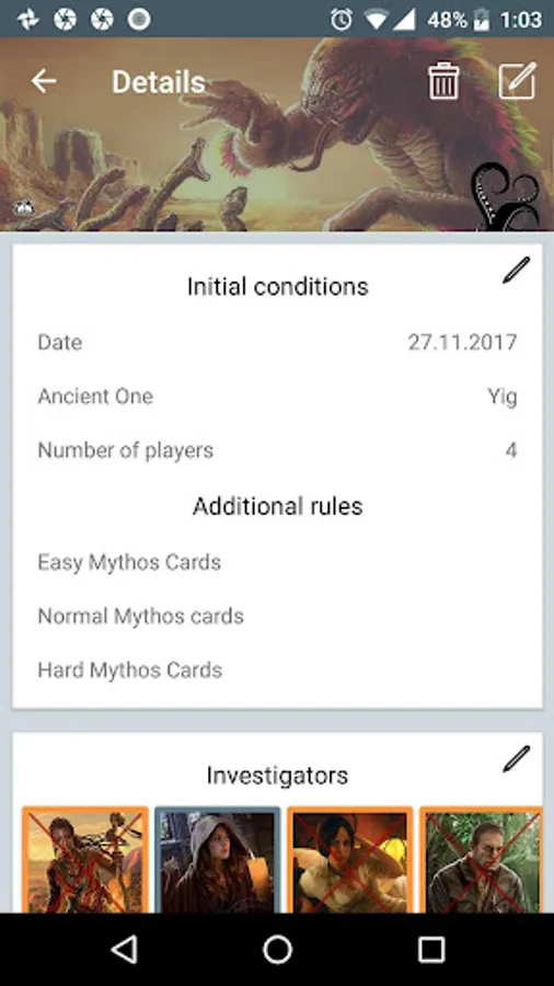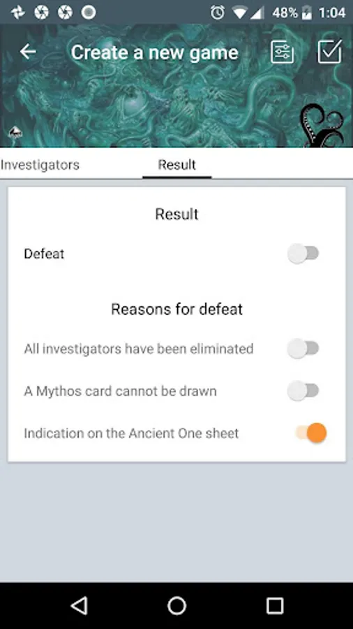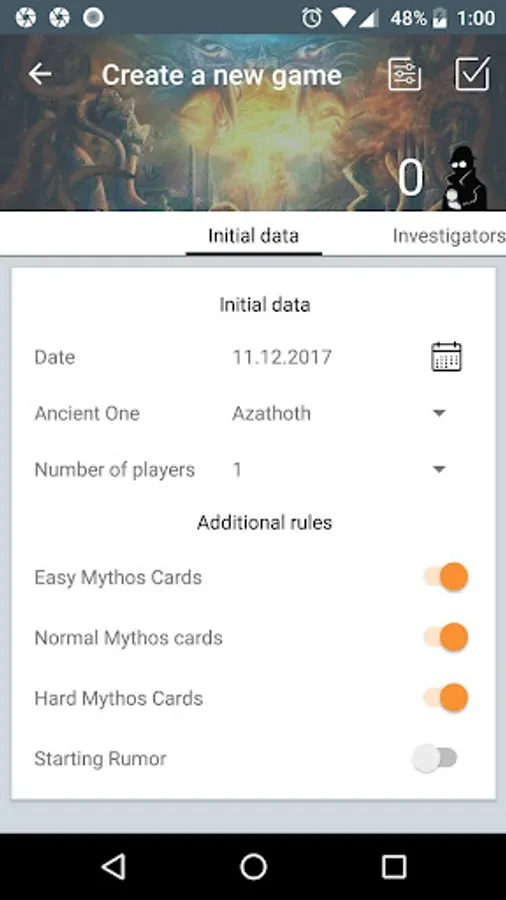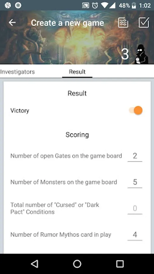 App assistant for counting victory points, and save the results of games played for the board game "Eldritch Horror"