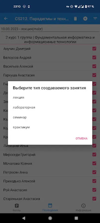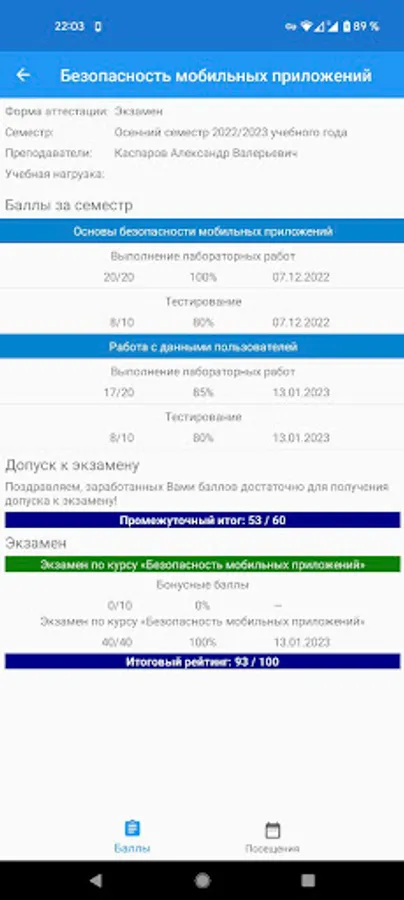 A handy application for accessing the Southern Federal University Score-Rating System service, which allows students to view their scores and attendance by discipline, and teachers to set scores and keep track of attendance, creating classes and marking the presence of students on them.