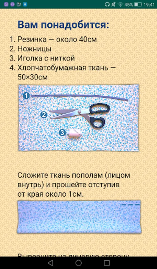 This appendix contains instructions for sewing a medical face mask from fabric using improvised means.