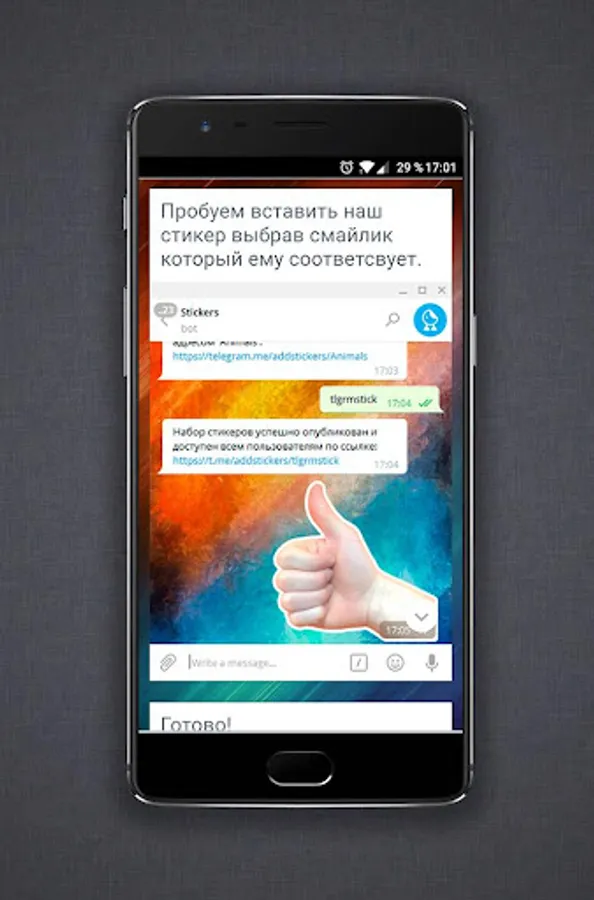 In the second part you will learn how to interact with the bot spetsilno Telegram, find out what commands to send to place the sticker in the messenger, and how to build a set of stickers.