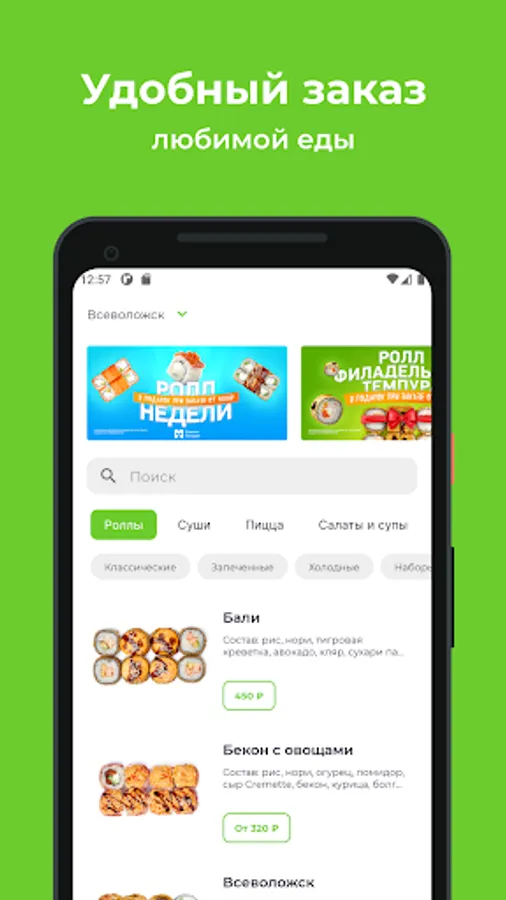 Download our application, choose your branch to order and order delicious rolls and pizza!