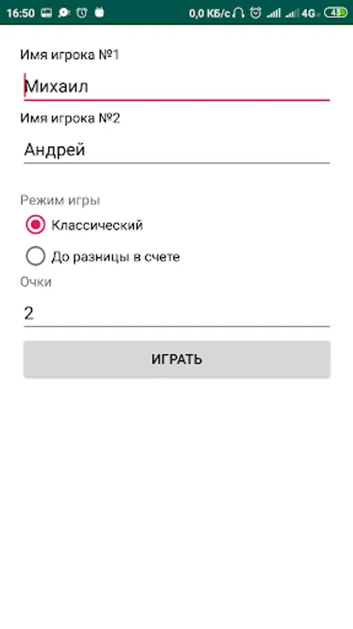 In this mode, the winner is the one who quickly provides himself with a given difference in the score. This mode is not available in the demo version.
