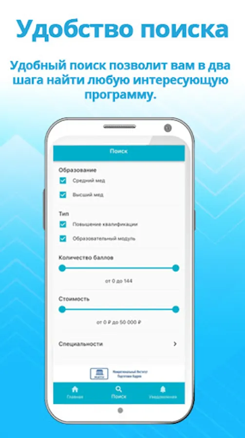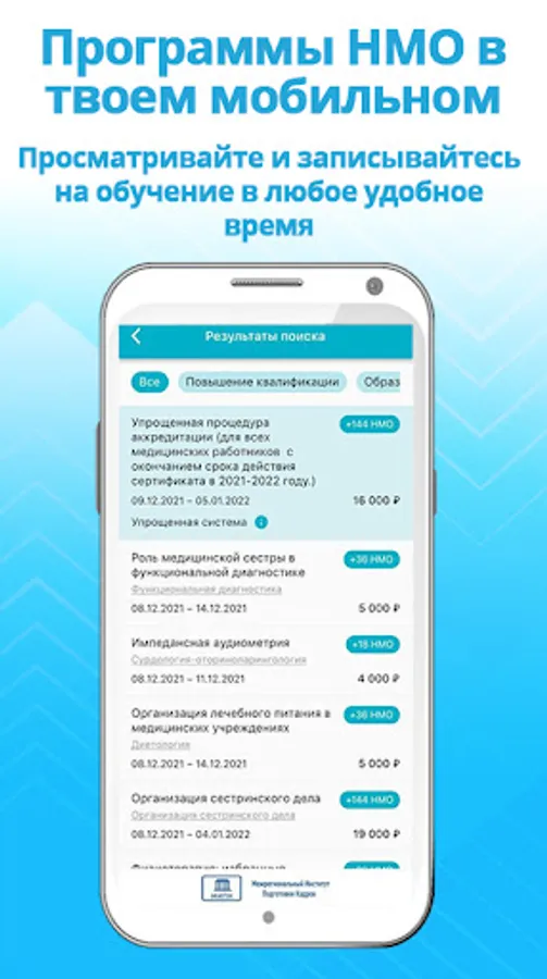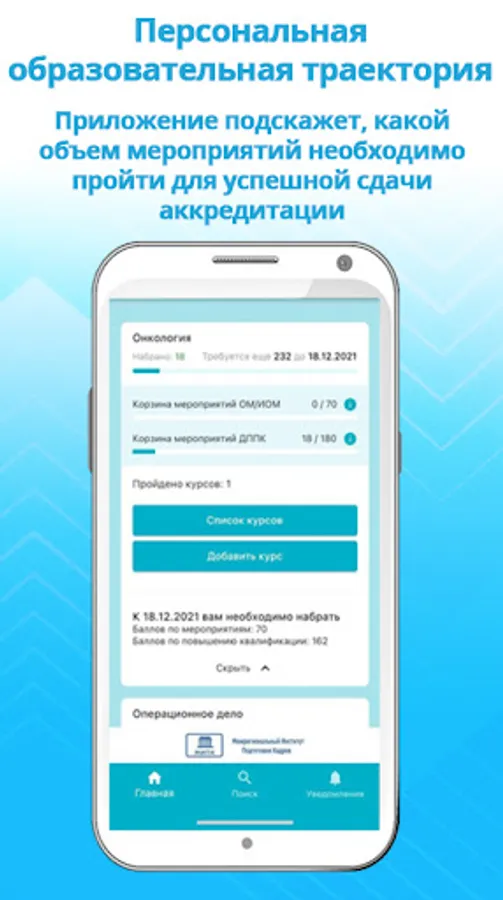 MIPK NMO is an application for medical and pharmaceutical specialists with higher and secondary education, which allows you to organize an individual educational route, as well as keep a record of your own educational activity.