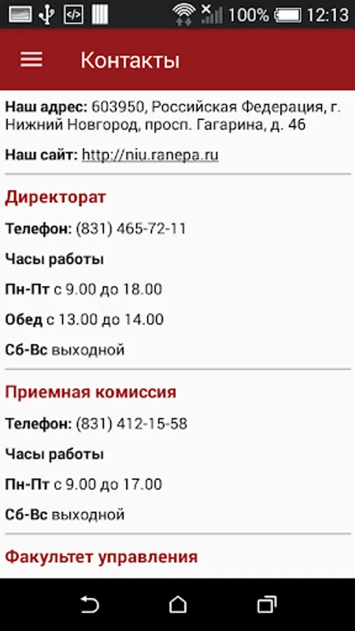 Mobile application of the Nizhny Novgorod Institute of Management - a branch of RANEPA, with which you can: