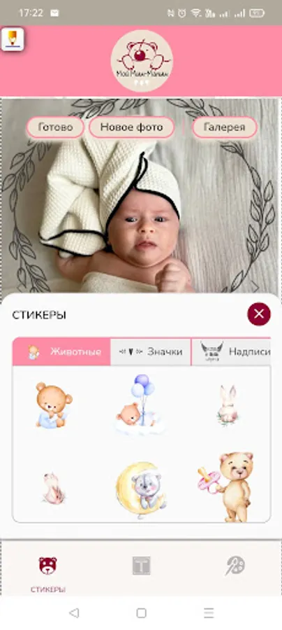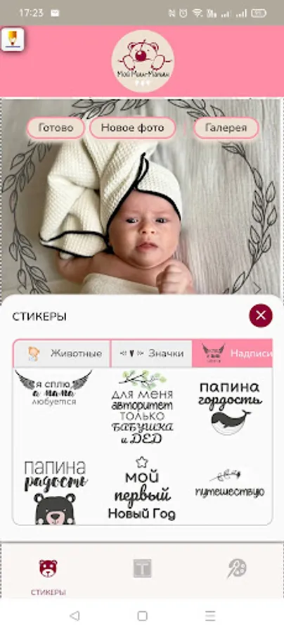 Приложение для создание фотоальбомов вашего малыша. Можно накладывать стикеры, надписи, создавать галерею и делиться фото.