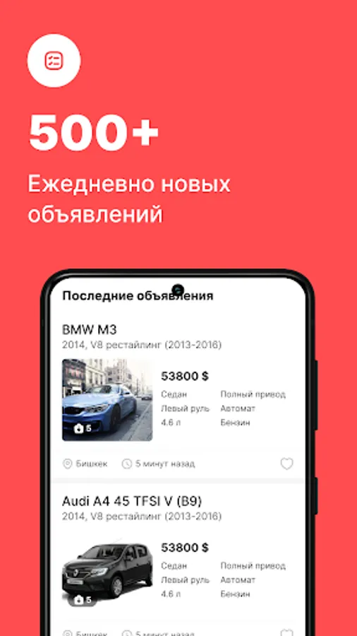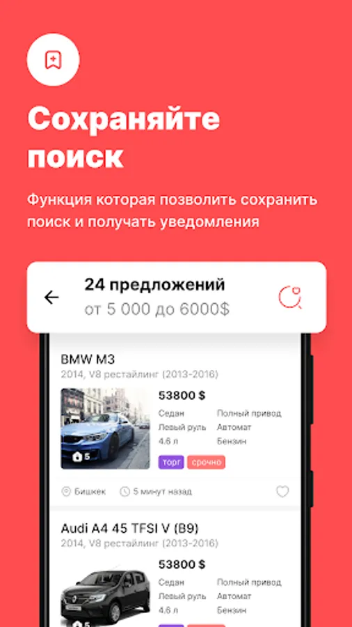 Convenient search for the desired car by different parameters: make, model, year of manufacture and much more. You can save search parameters to quickly view your options.