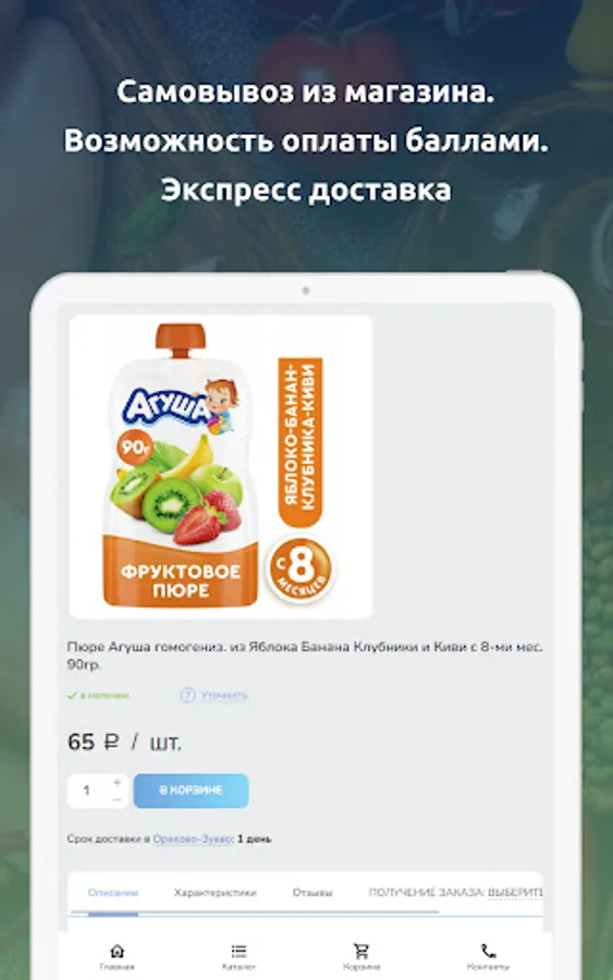 MIX - This is not only an online store with the delivery of groceries, ready-made food, household goods by the appointed time, but also a convenience store where you can reserve goods for pickup and pick up an already assembled and paid purchase. Delivery can be paid and free, it all depends on the amount of the purchase.