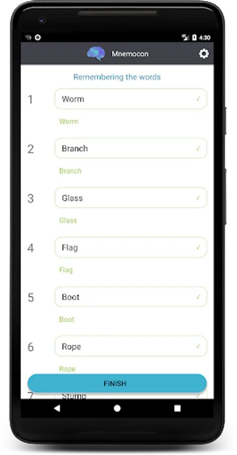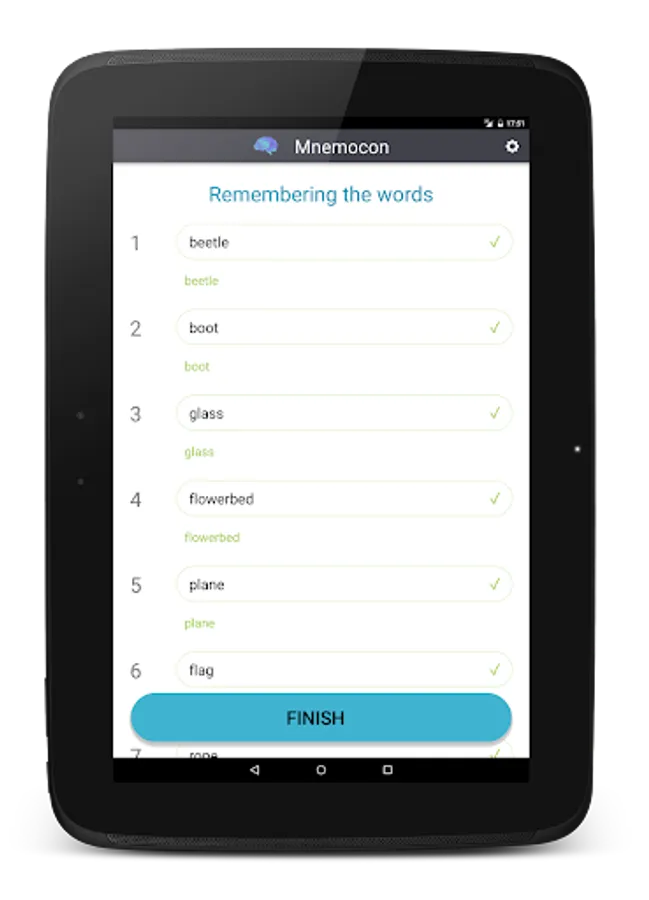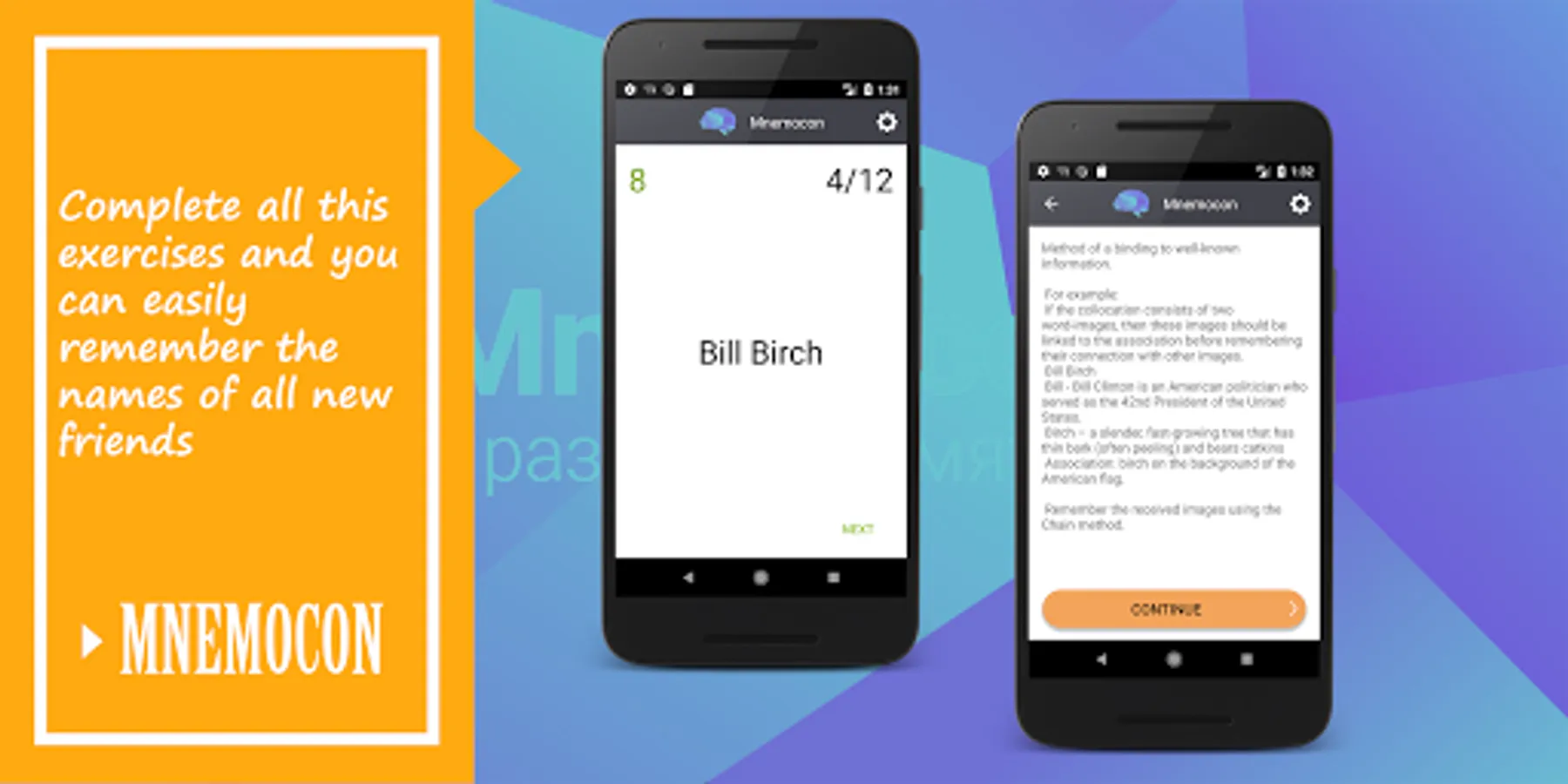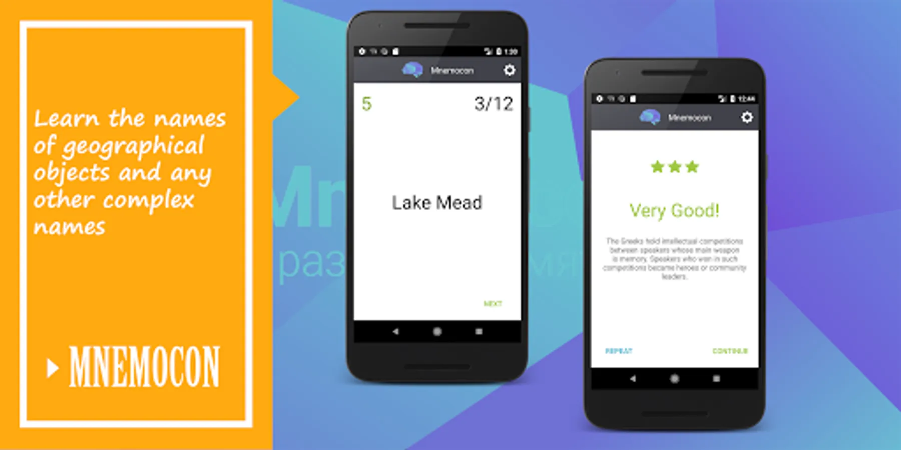 Mnemocon is the best of all memory games, sequence game and applications based on cognitive psychology available today. Unlike the applications for the development of cognitive abilities in Mnemocon you will remember the real information from the first lesson - words, phrases, figures and dates, name of US states. And unlike applications that use the principles of mnemonics, in Mnemocon there are systematization of exercise, the gradual increase in complexity and a wide variety of information for memorization.