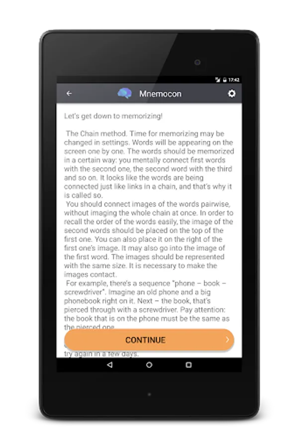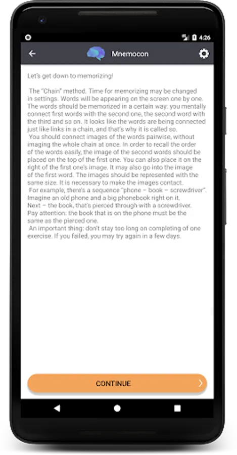 The application build on the great course of brain exercises to learn techniques for fast and quality remembering the information. Mnemocon include the most effective memory techniques - mnemonics.