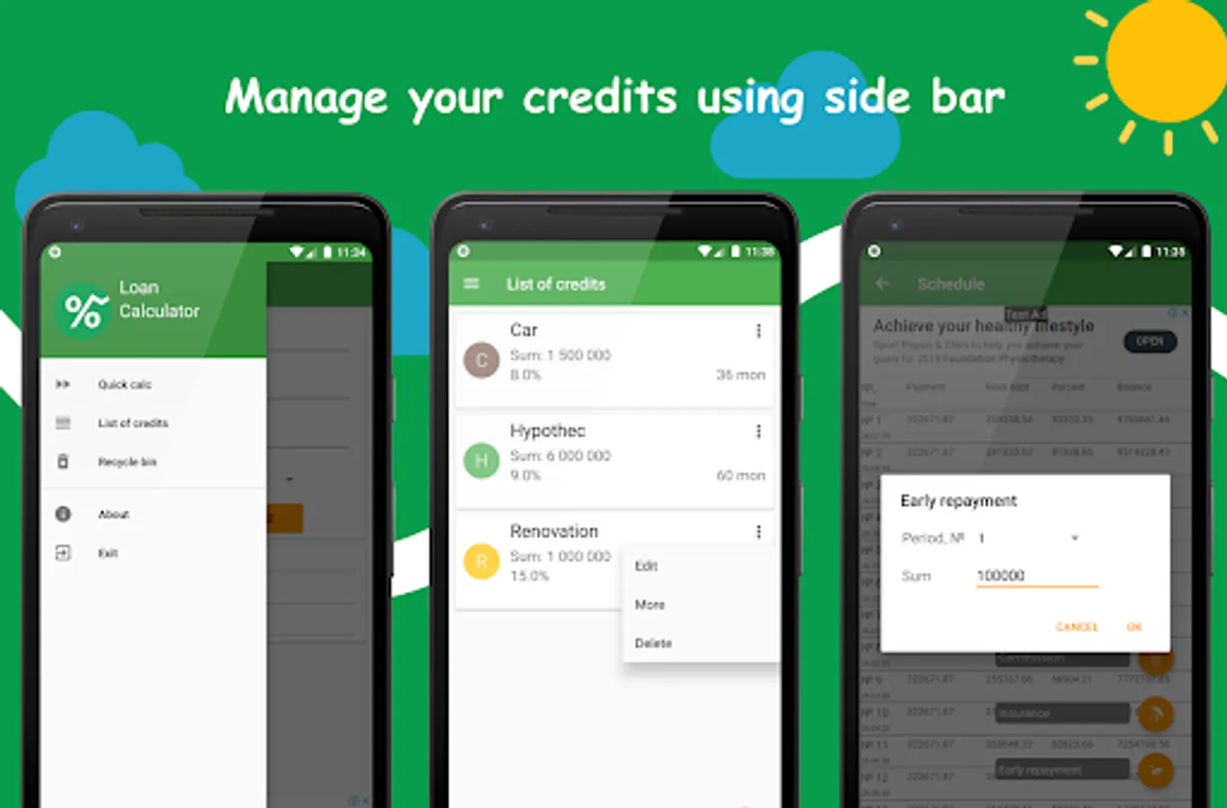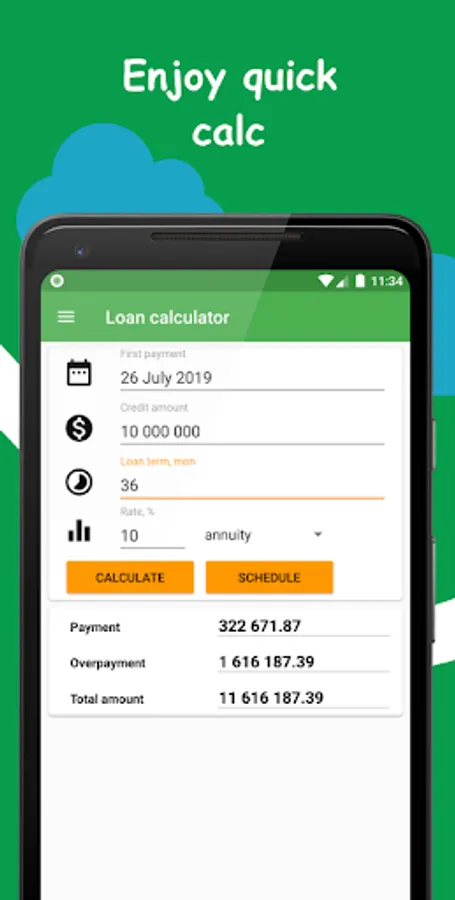 We created the "light" loan calculator, with which you calculate the credit, build schedule, and will be able to choose the type of payment.