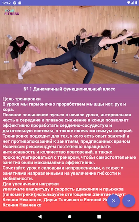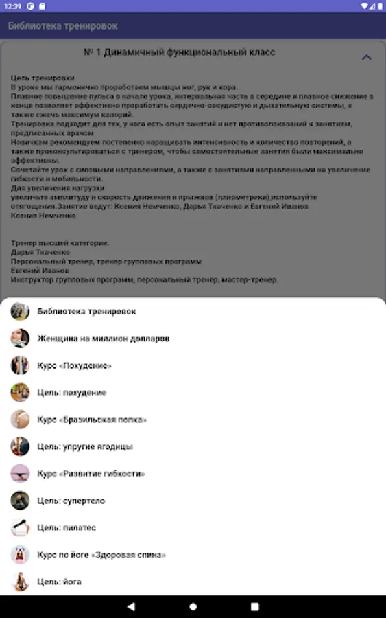 С приложением AppFitness Вы сможете поддерживать себя в хорошей форме не выходя из дома или в любом удобном месте и в подходящее время. Специально для Вас команда тренеров разработала множество программ тренировок, а также курсы на различные темы. Программы включают как текст так и видео, которые позволят вам заниматься спортом вместе с тренером, повторяя все движения, сопровождающиеся комментариями и советами.