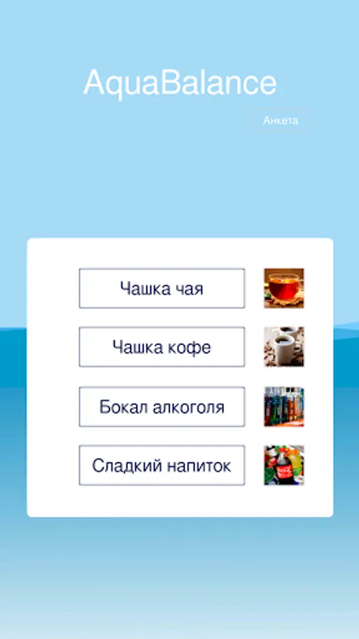 4.2. "Drinks" - you always press this button if you drank tea, coffee, alcohol or a variety of sugary drinks.
