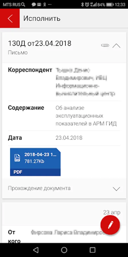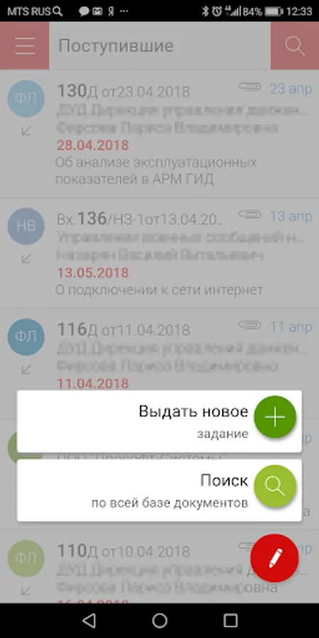The mobile app is the ability to work as a data document registration card, and with its electronically, carried out in an automated database search of documents by various criteria, to execute documents to carry out the reconciliation process, charging document for execution, control the execution of documents and orders.