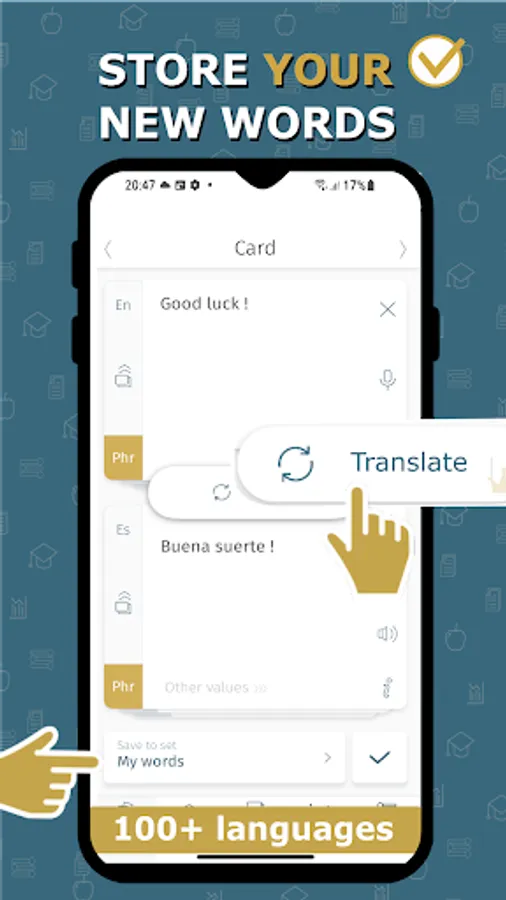 Store your new words in the app, make flashcards in a snap!