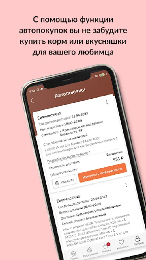 In the application, you can make purchases, create auto-purchases if you need to receive some goods on a regular basis.