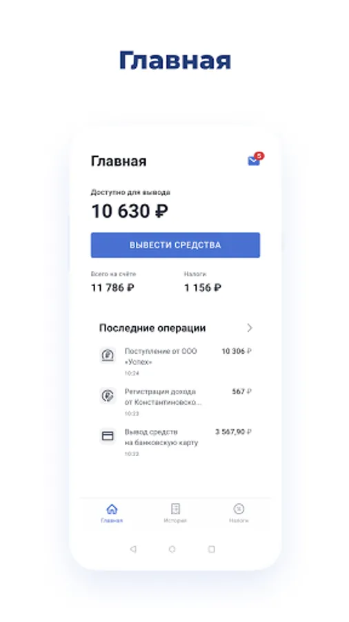 Practitioner - Modulbank application for self-employed people working with legal entities. It automatically registers income, receives payments from a legal entity, helps pay taxes and transfers your money to any other bank to a personal card.