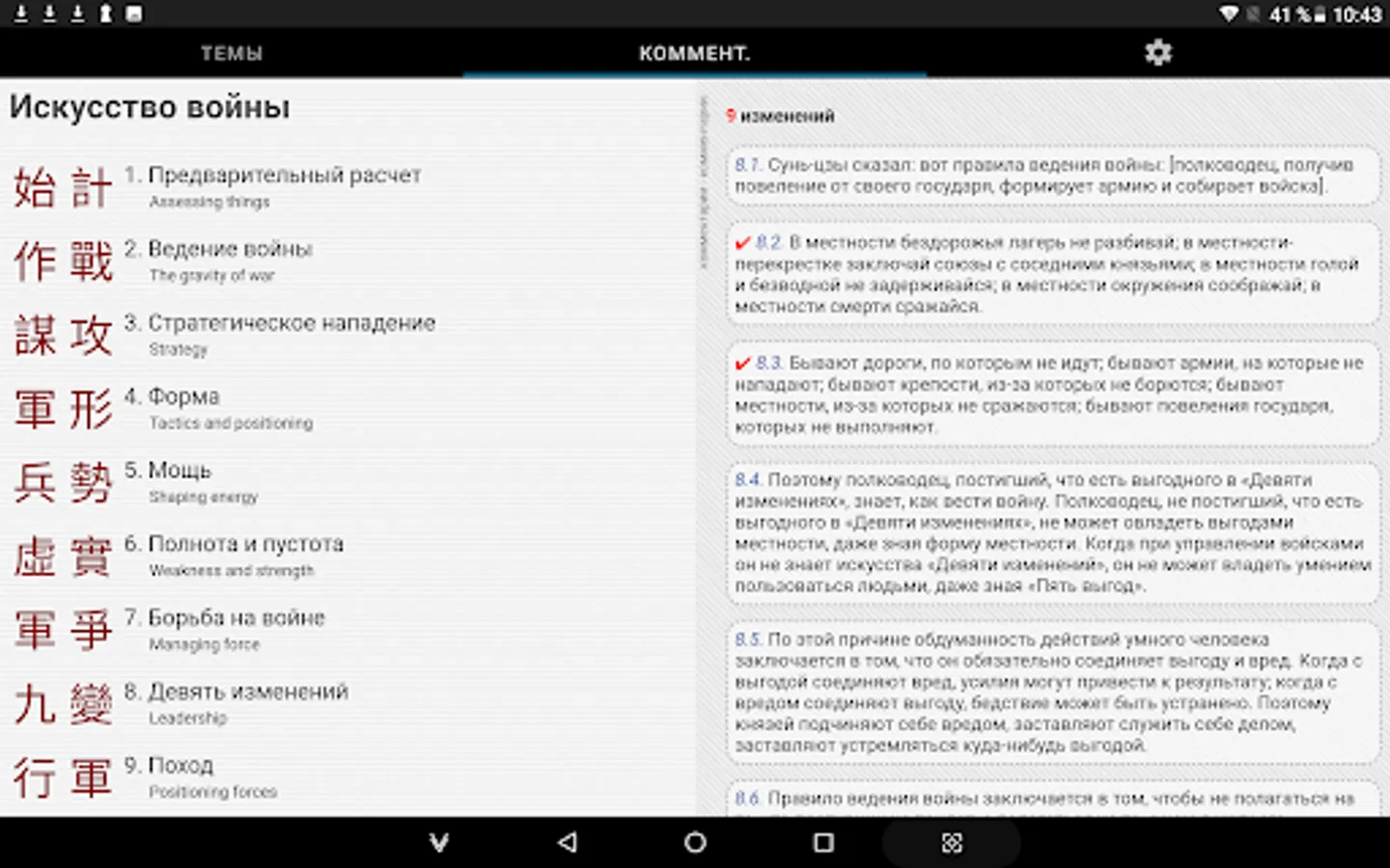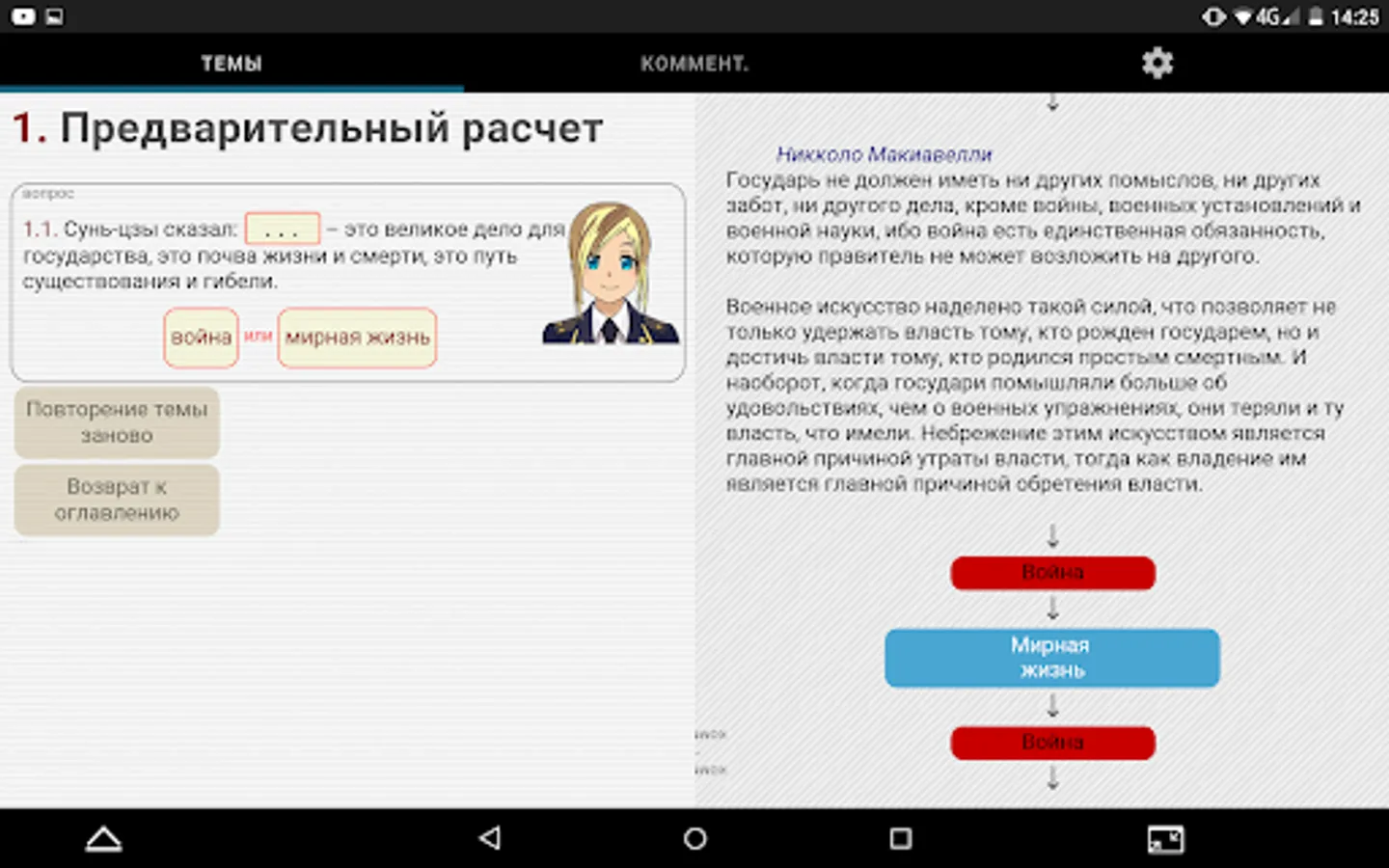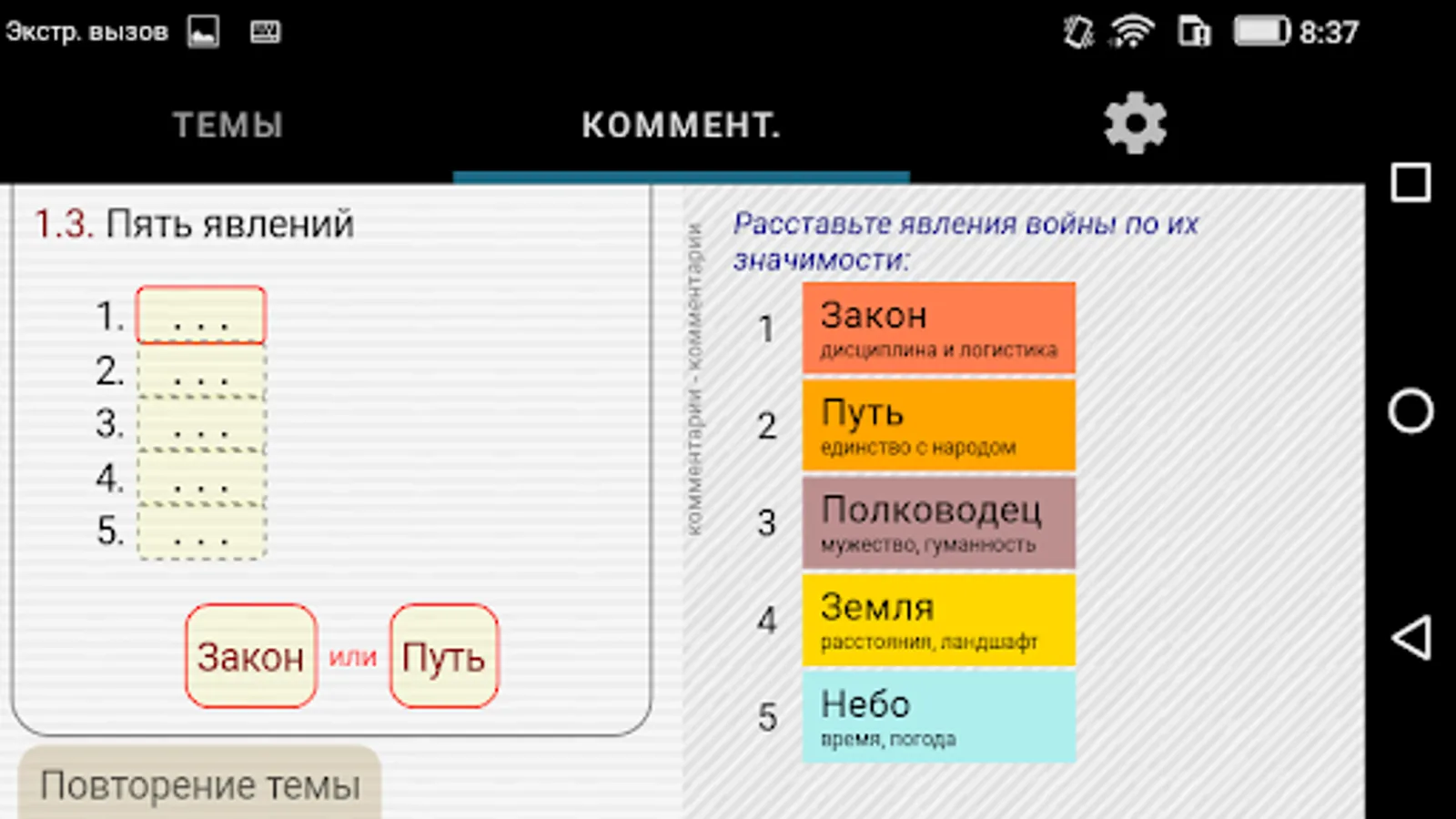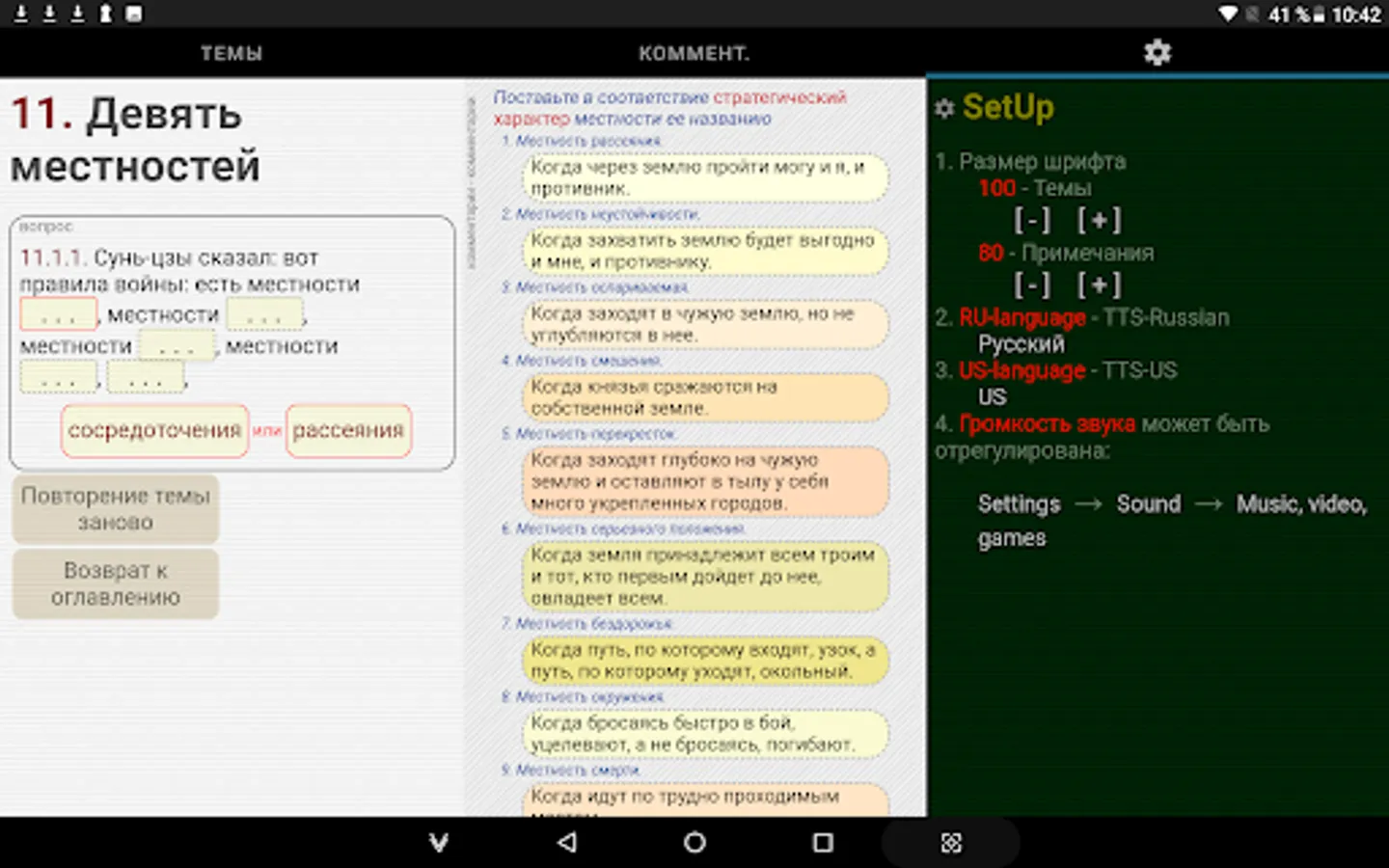 You must answer chains of questions about tactics and strategy, about the use of enemy weaknesses, the practical control of soldiers, about the methods of attacking the enemy, about the use of spies, etc.
