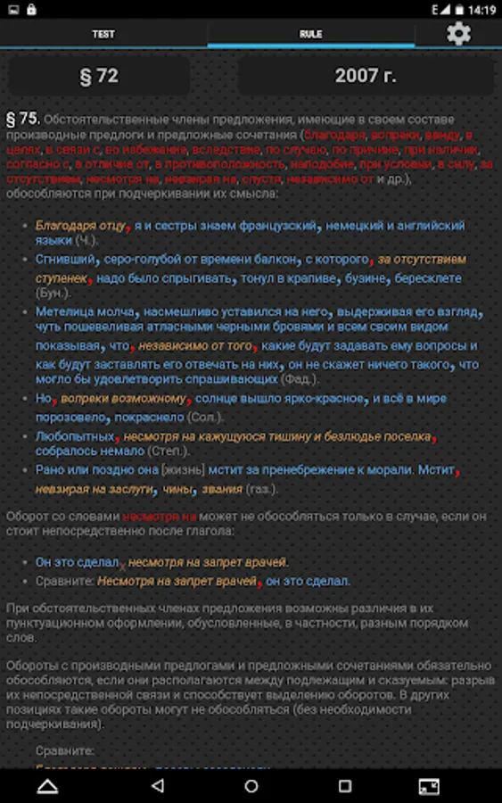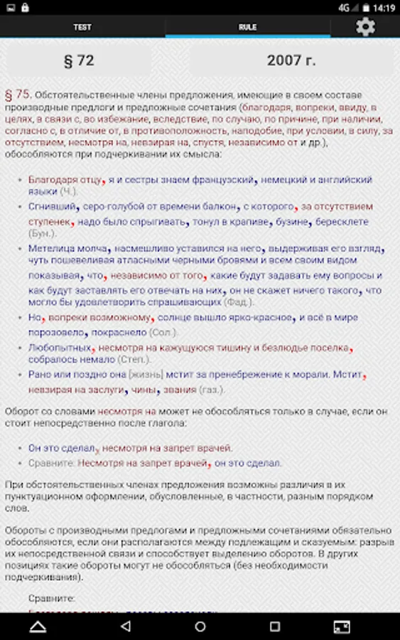 "Punctuation 2007" is a game in which you can test your knowledge of the Russian language and learn what you do not know yet. The application contains about 1000 citations from Russian classics, in which you need to place commas, colons, quotes and dashes. A nice teacher always tells you the right answer, but at a certain price: will reduce the final grade if you make a mistake. Excellent ratings to you in the game and in real life! - Good literacy is always useful.