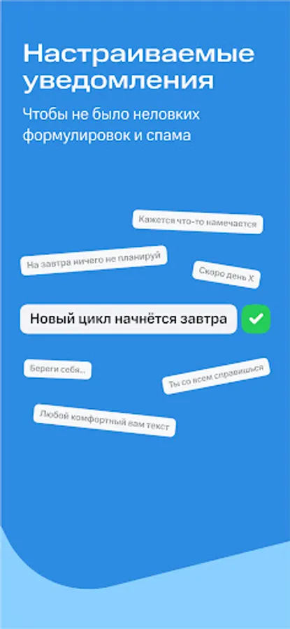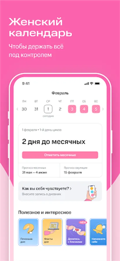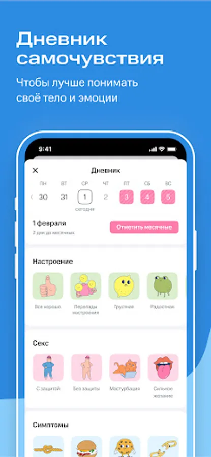 An important part of the menstrual cycle is premenstrual syndrome. To keep track of changes in well-being and mood, the women's calendar will tell you when the days of PMS will come, and the well-being diary in the application will help you note the necessary symptoms.