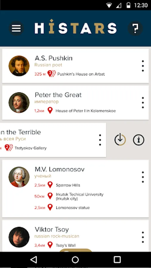 Join up the users of “HISTARS", open the world of history in a kaleidoscope of the modern world, make selfie and share the photos with your friends!