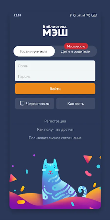 The application provides access to educational content hosted in the Library of the Moscow Electronic School.