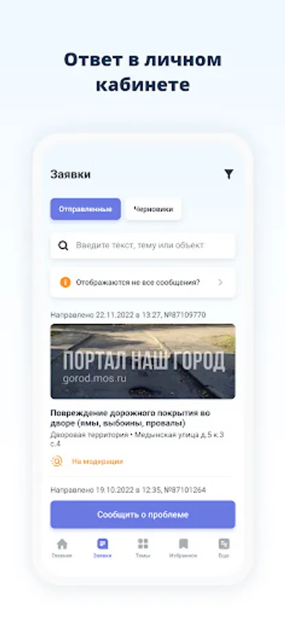 Using the Our City app, every resident of the capital can report problems in the maintenance of city facilities (poor cleaning, potholes, lighting problems, etc.) and monitor the quality of problem resolution by city services.