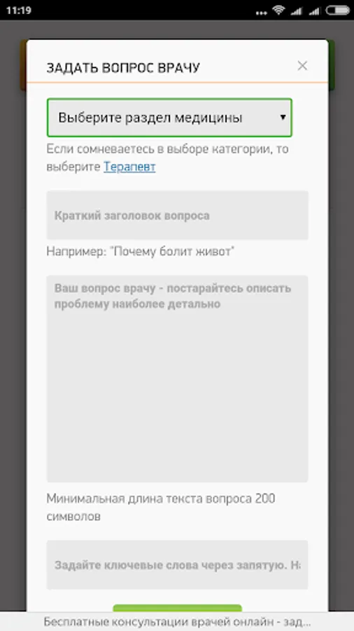 To ask a question to the doctor and get free medical advice from a specialist, simply fill out the question creation form. Ask questions without leaving your home! The service works without days off.