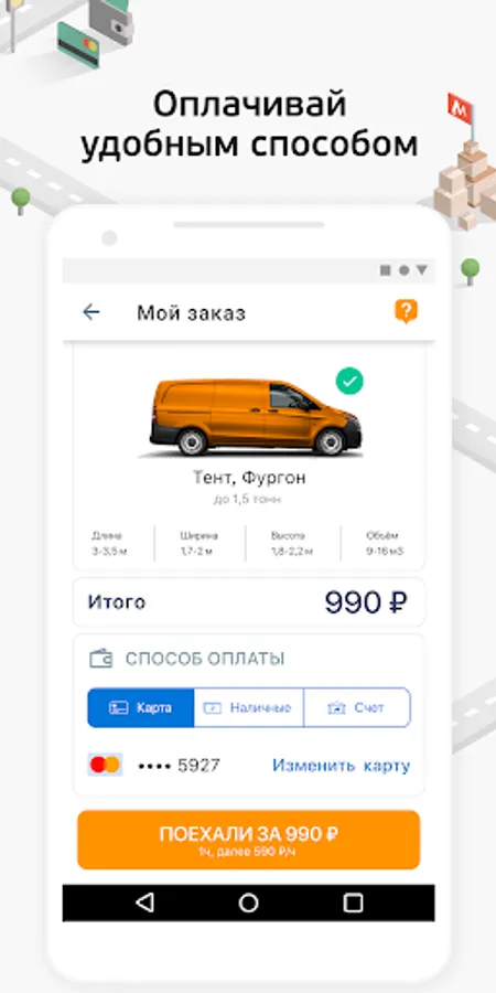 MINI up to 900 kg - 1150 ₽ (further 200 ₽ / 15 minutes)