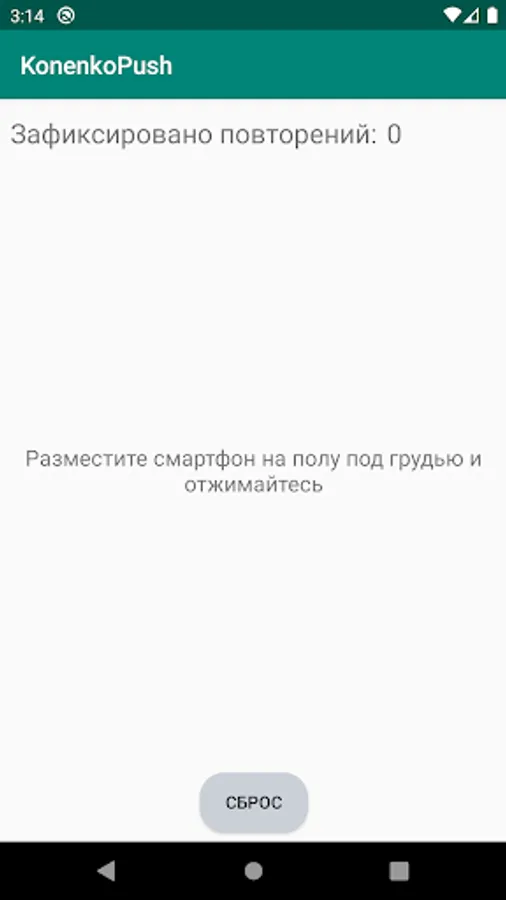 Application for fixing the number of correctly performed push-ups (lying emphasis).