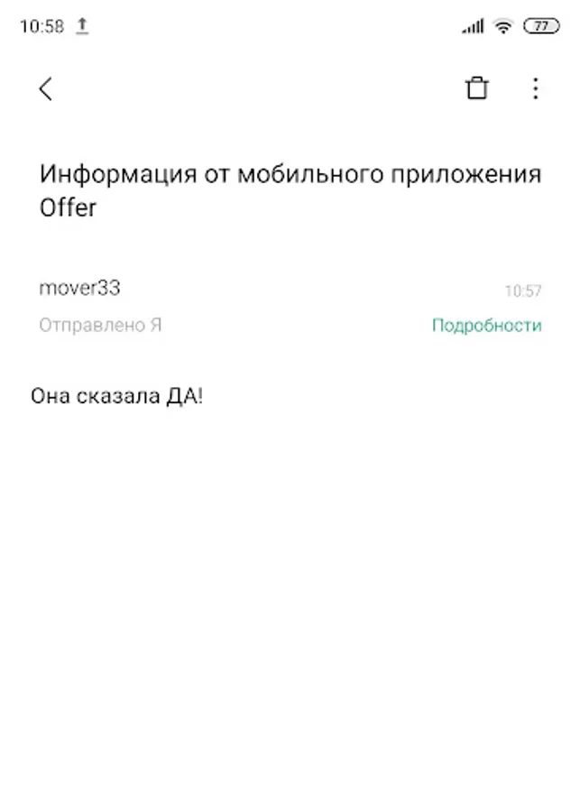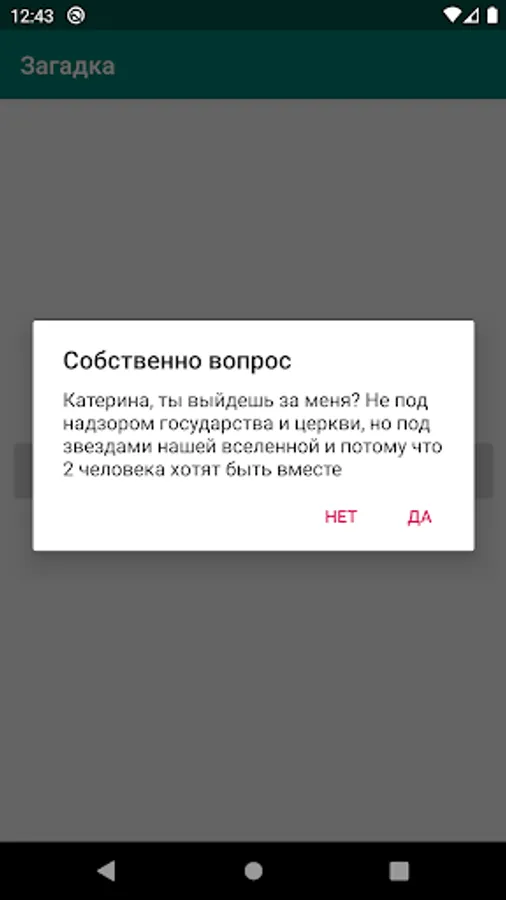 I bring to your attention a mobile application to make an original proposal to your girlfriend. Order a personal mobile application from us. Texts and graphics are customized for you individually. You will receive a notification when the girl gives an answer in the application.