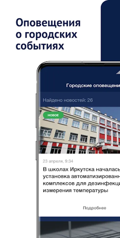 Receive alerts about important events in the city - messages about road repairs and bypass routes, a poster with the schedule of city holidays, storm warnings from the Ministry of Emergencies and much more.