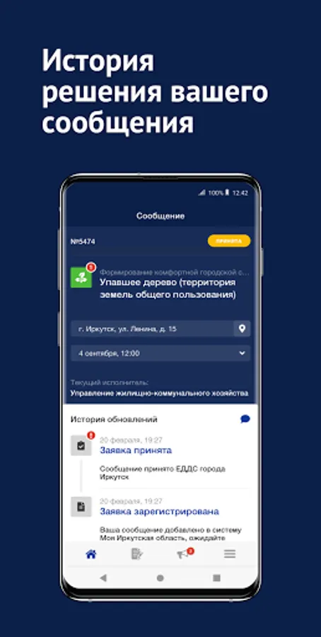 Submit messages according to the available problem types. Your appeal will automatically go to the right organization. You can monitor the progress of work on your message, monitor the status change. If there are clarifying questions, a chat is provided between the user (resident) and the dispatcher of the organization responsible for eliminating this problem. Upon completion of the work, you can evaluate the quality of the service provided or reject the decision if you are not satisfied with the decision made by the contractor.