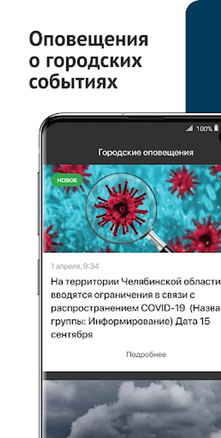 Get alerts about important city events: messages about road repairs and detour routes, a poster with the schedule of city holidays, storm warnings from the Ministry of Emergency Situations, and much more.