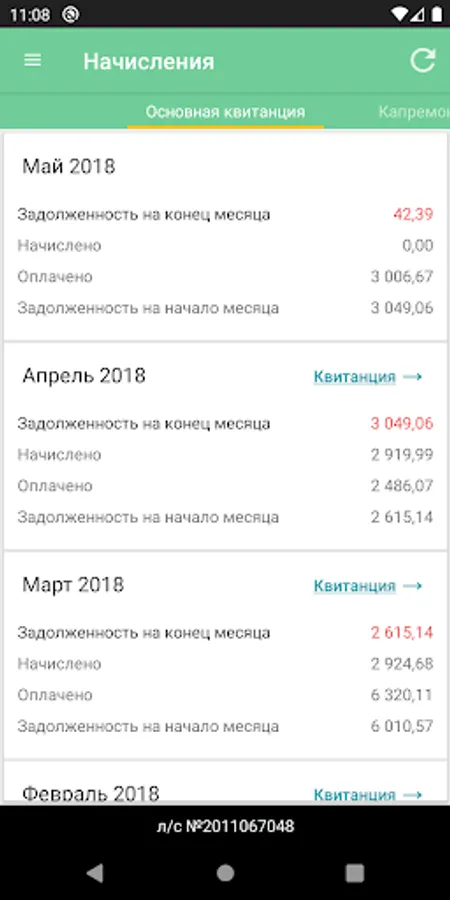 • View the current receipt for utilities and overhaul services with a breakdown by settlement item.
