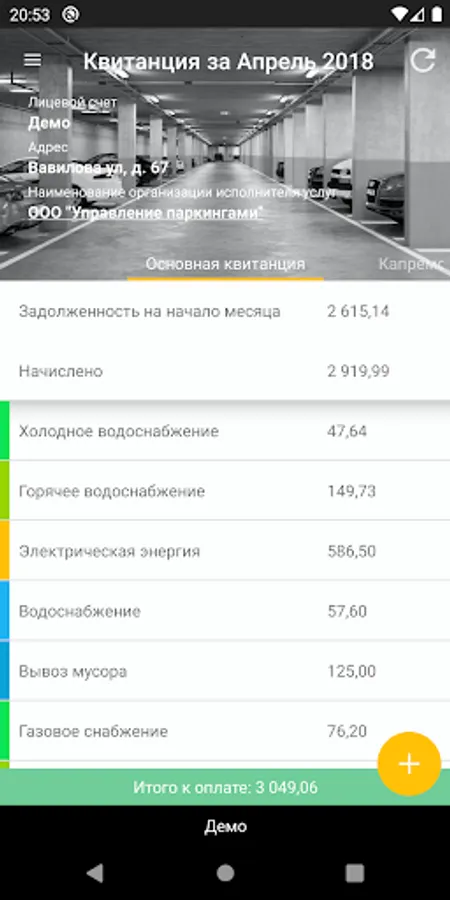 By default, the application provides access only to the demo version of your personal account. So that you can enter your personal account as a tenant, your housing and utilities management company must integrate with this mobile application. Then you should be given an access code in your personal account in the housing and communal services management company.