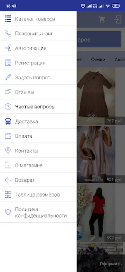 mobile version of the online store;