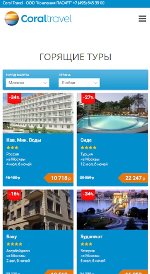 Coral Travel - Hot tours. Coral Travel - Pasart Company LLC