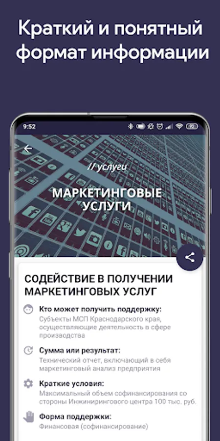 - The information is in the most understandable and concise format. When developing the application, we were guided by the principle “A person gets acquainted with the state. support in 60 seconds "