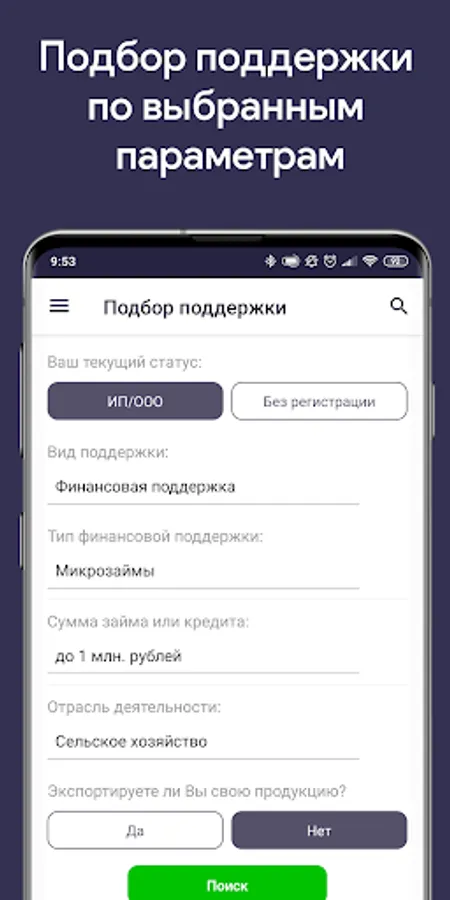 ATTENTION: at the moment, the application is available only to entrepreneurs of the Krasnodar Territory, but in the future we plan to expand to other regions of Russia. Thank you for using our product!