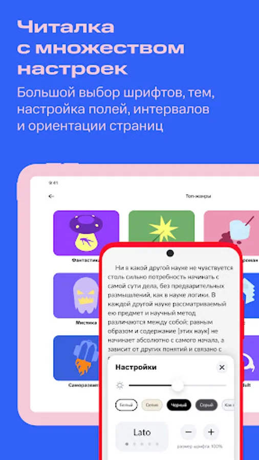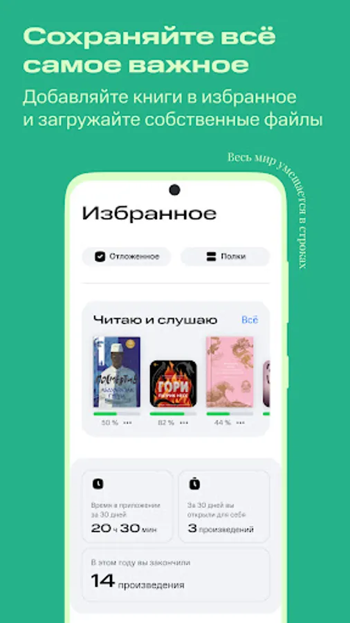 • Save your favorite books and authors, create your own collections of books, mark interesting fragments right in the course of reading and share them with friends.